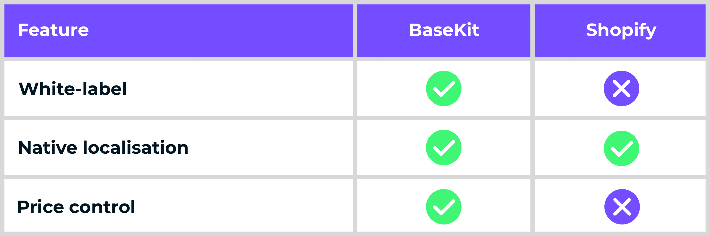 Both platforms scale technically, but in different directions. Shopify scales for individual merchants, while BaseKit Store scales for partners who want to deliver e-commerce to thousands of SMBs under their own brand with full operational control.