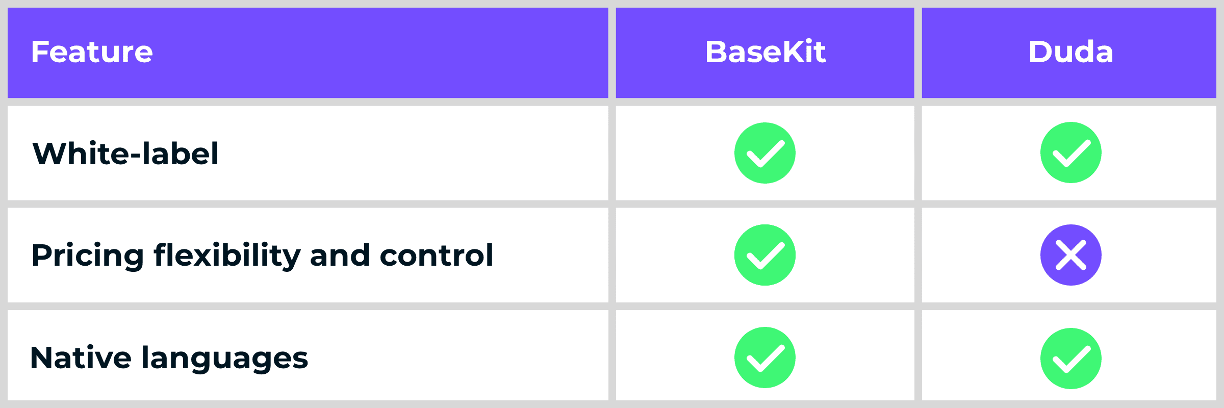 BaseKit is focused on helping partners deliver simple, scalable digital tools to everyday small business owners with no technical or design experience. Duda is focused on giving agencies powerful design capabilities for client projects. The right choice depends on whether you want to empower small businesses to self-serve or equip professionals to build sites for them.